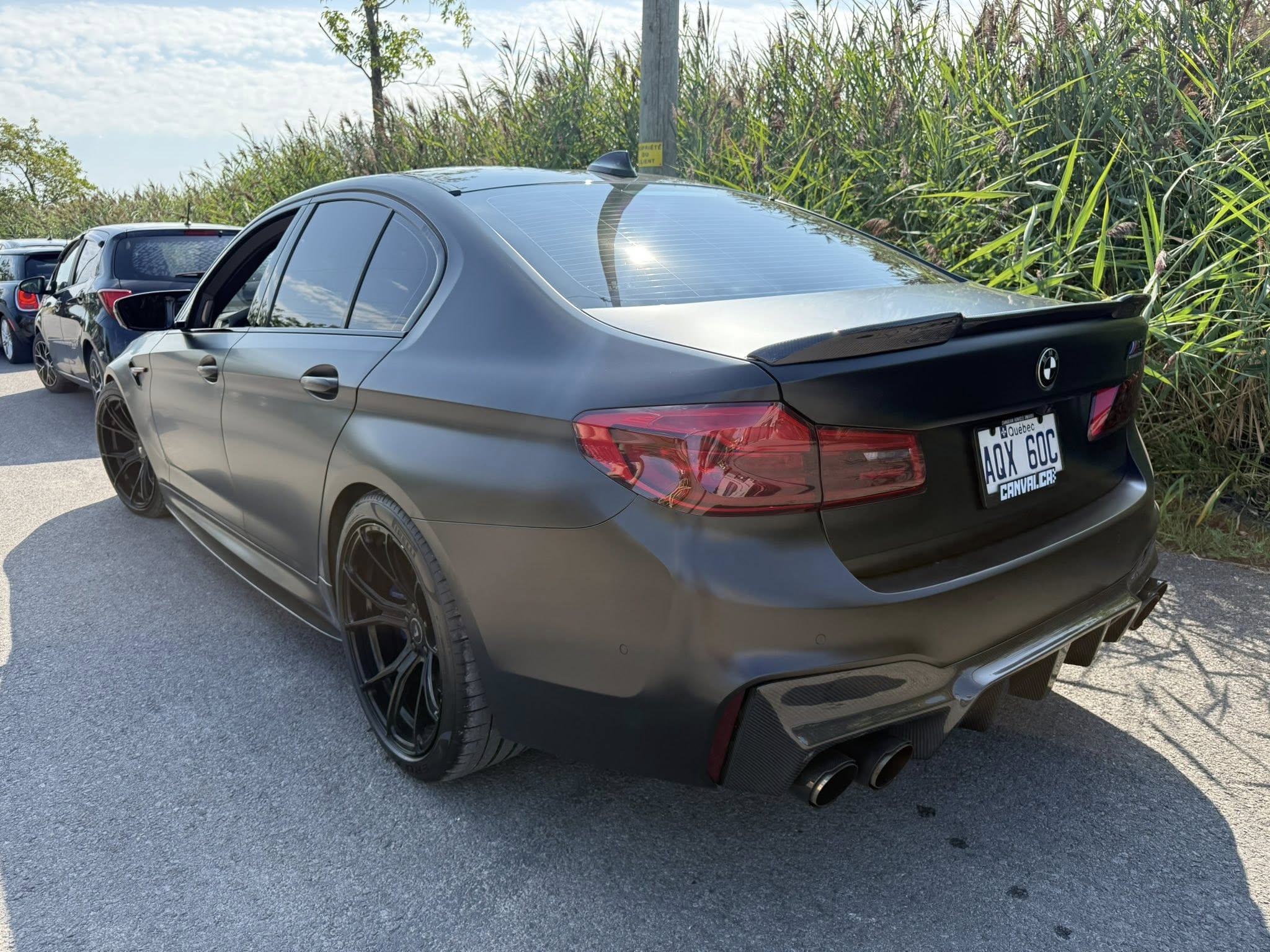Toute équipé: véhicule de couleur noir d’origine wrapé il y a 6 mois en noir mat , plusieurs pièces en cabone aileron, lips, jupe arrière, groupe électrique complet, cruise contrôle adaptatif, air climatisé, bancs en cuir orange chauffants et ventilés, système d’échappement en titane, système de son haut de gamme, écran tactile, jamais été accidenté et comme neuve, mags niche avec pneus neufs et mags d’origine aussi inclus